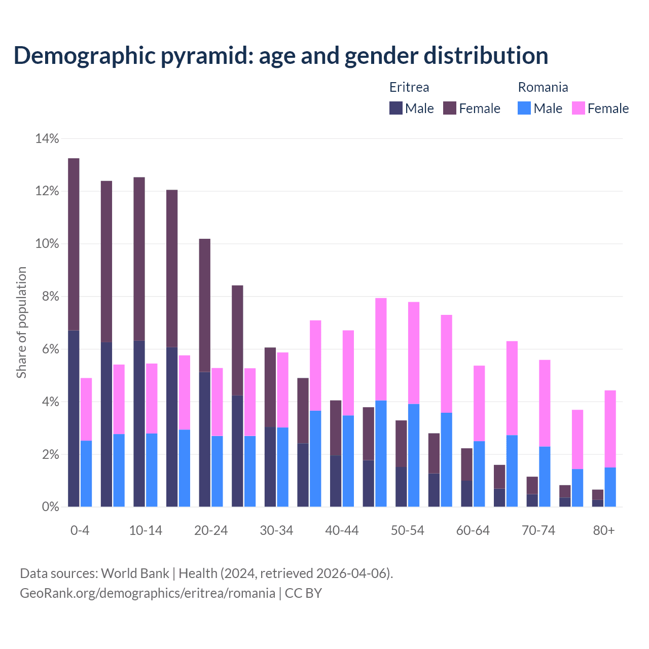 Demographics of Eritrea compared to Romania: