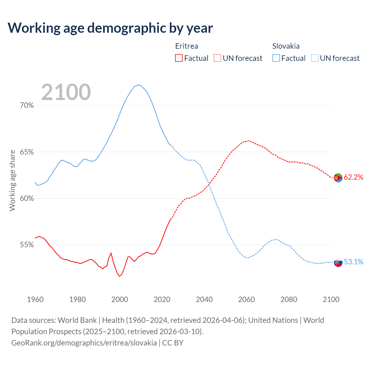 - Eritrea has 2.13M working age adults (aged 15-64) vs 3.52M in Slovakia.