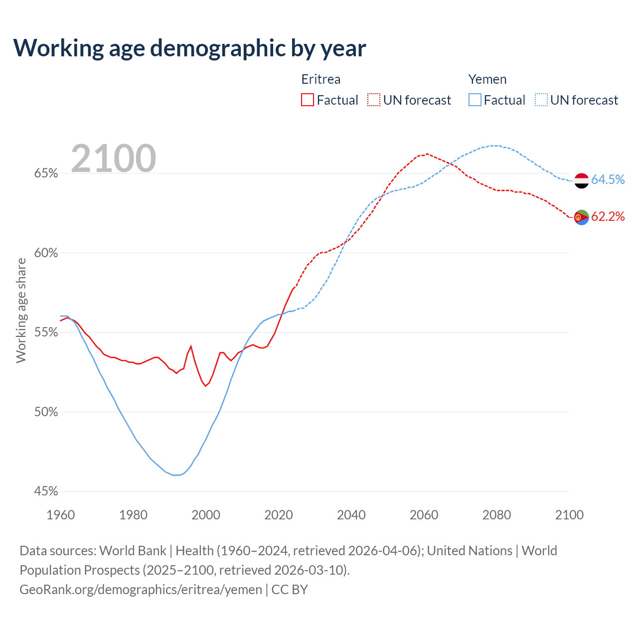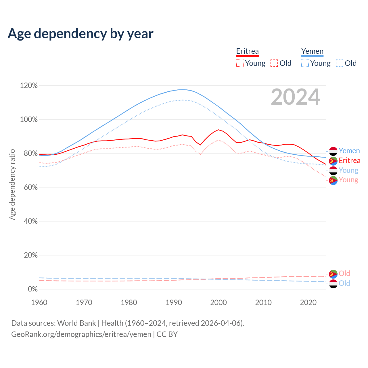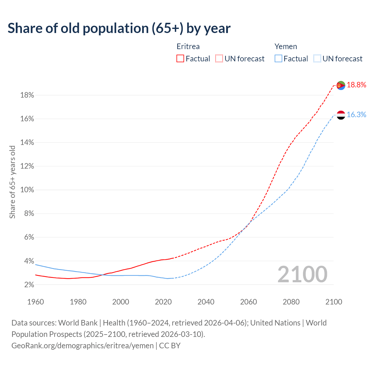 - The share of old-age demographic (65+) in Eritrea is 4.2% vs 2.52% in Yemen.