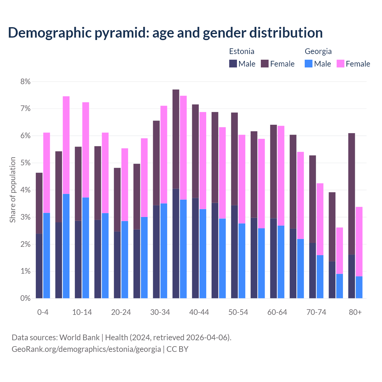 Demographics of Estonia compared to Georgia: