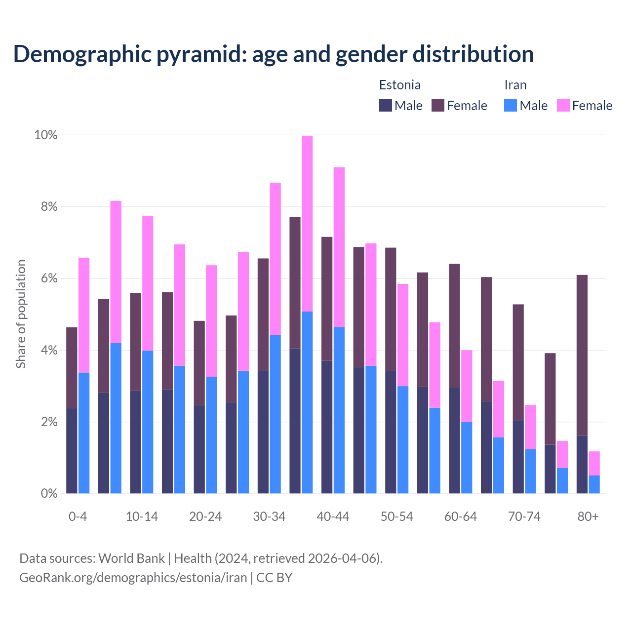 Demographics of Estonia compared to Iran: