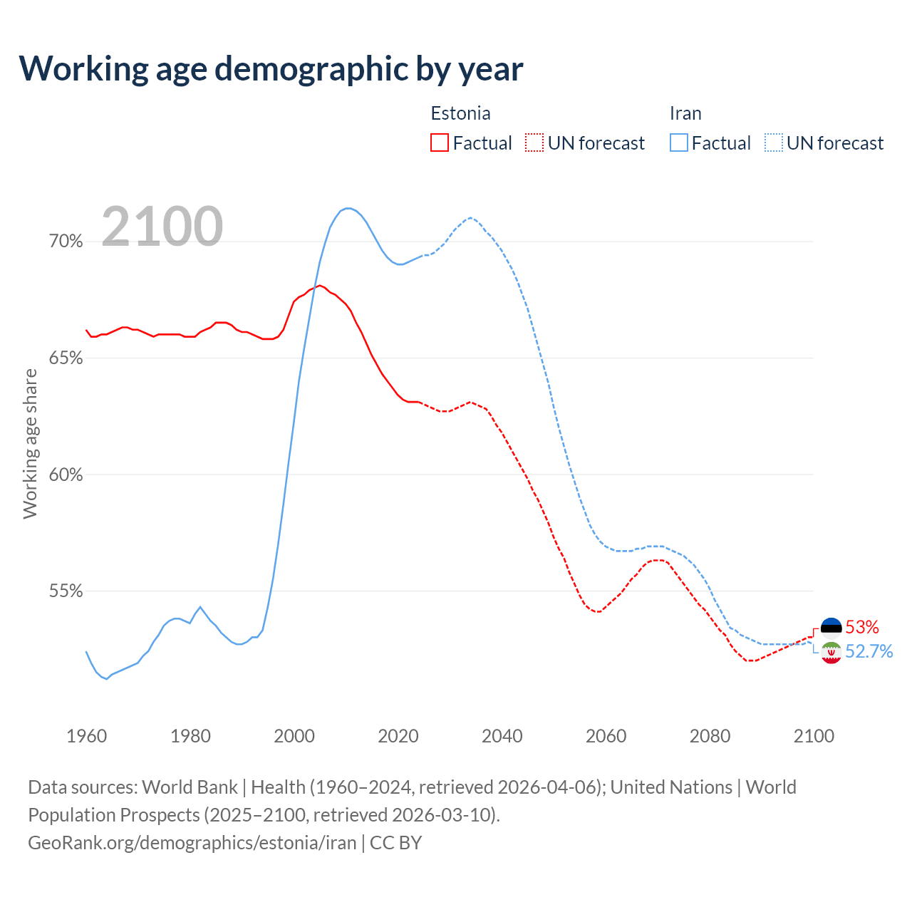 - Estonia has 845K working age adults (aged 15-64) vs 64.8M in Iran.