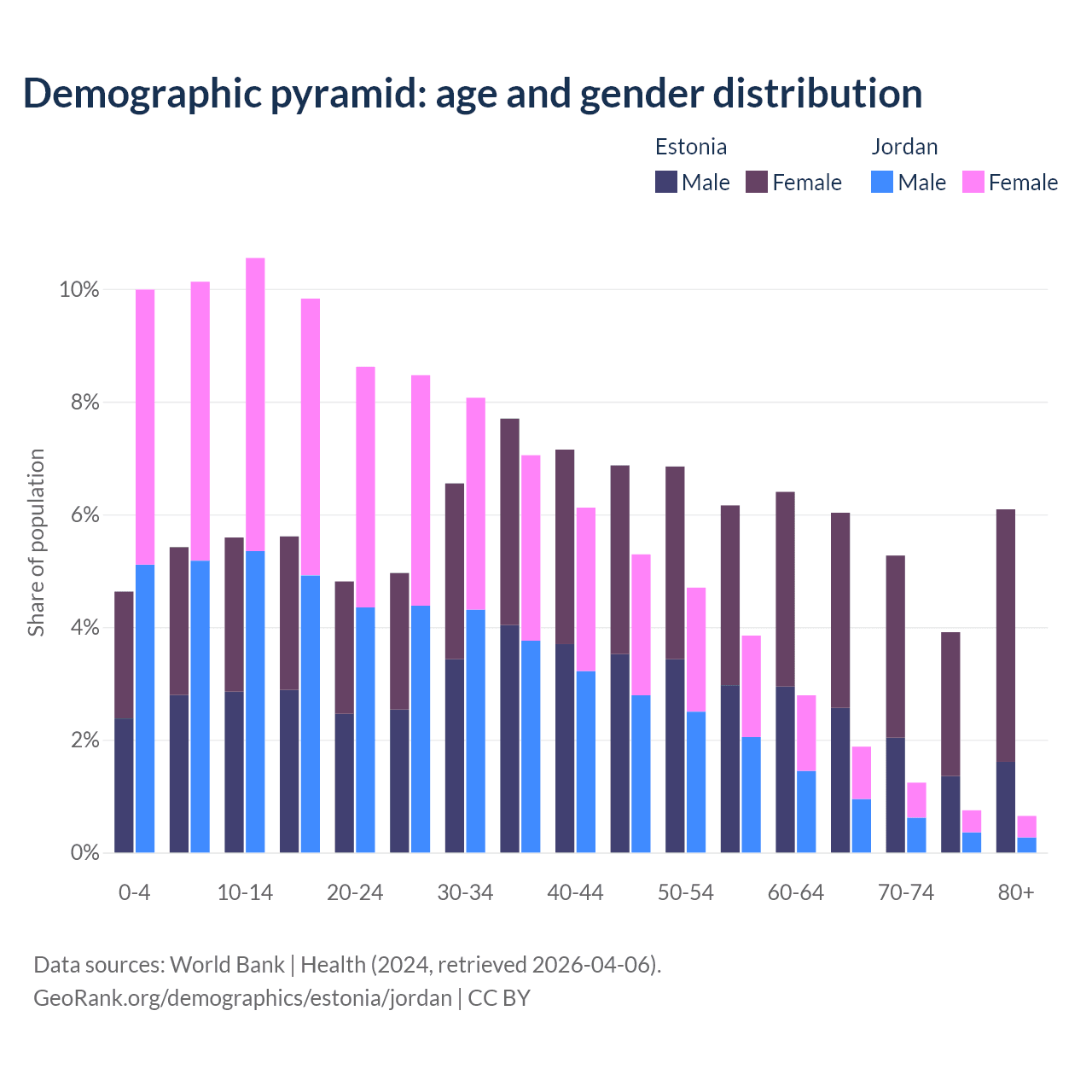 Demographics of Estonia compared to Jordan: