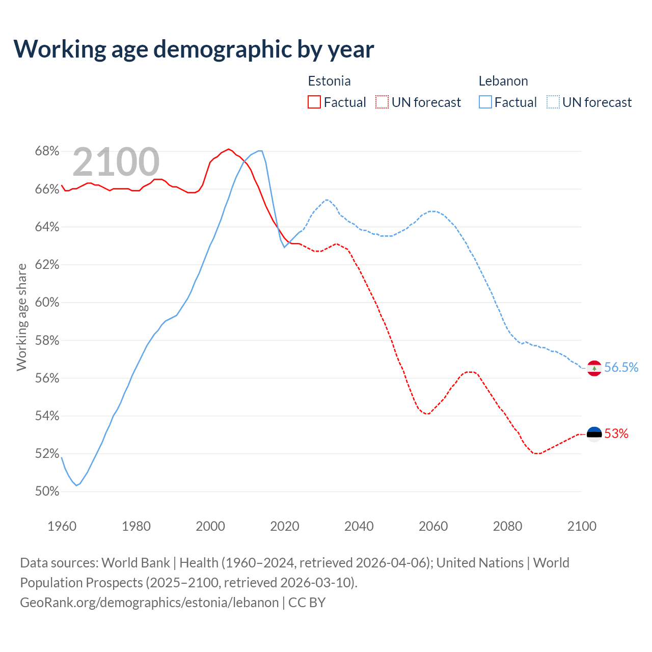 - Estonia has 845K working age adults (aged 15-64) vs 3.76M in Lebanon.