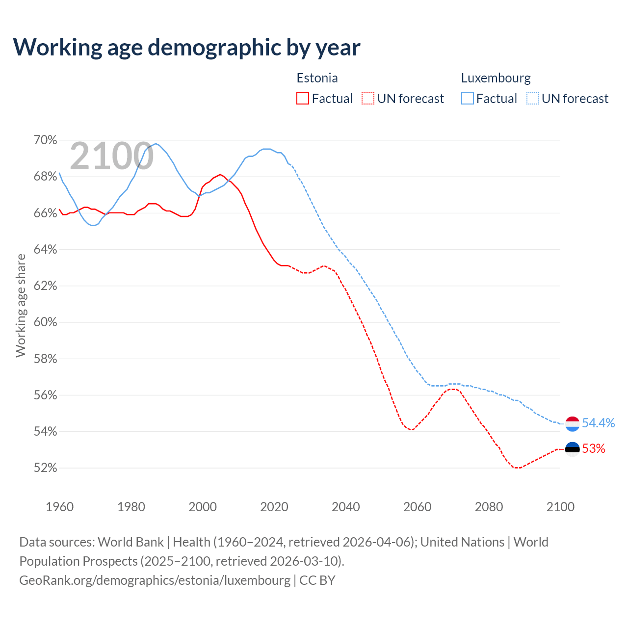 - Estonia has 845K working age adults (aged 15-64) vs 477K in Luxembourg.