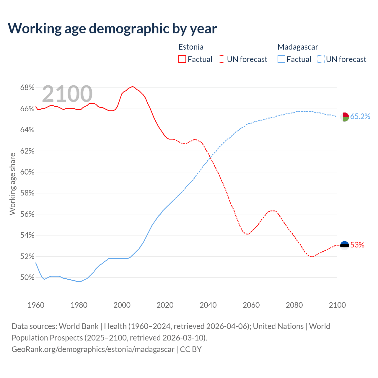- Estonia has 845K working age adults (aged 15-64) vs 19.4M in Madagascar.