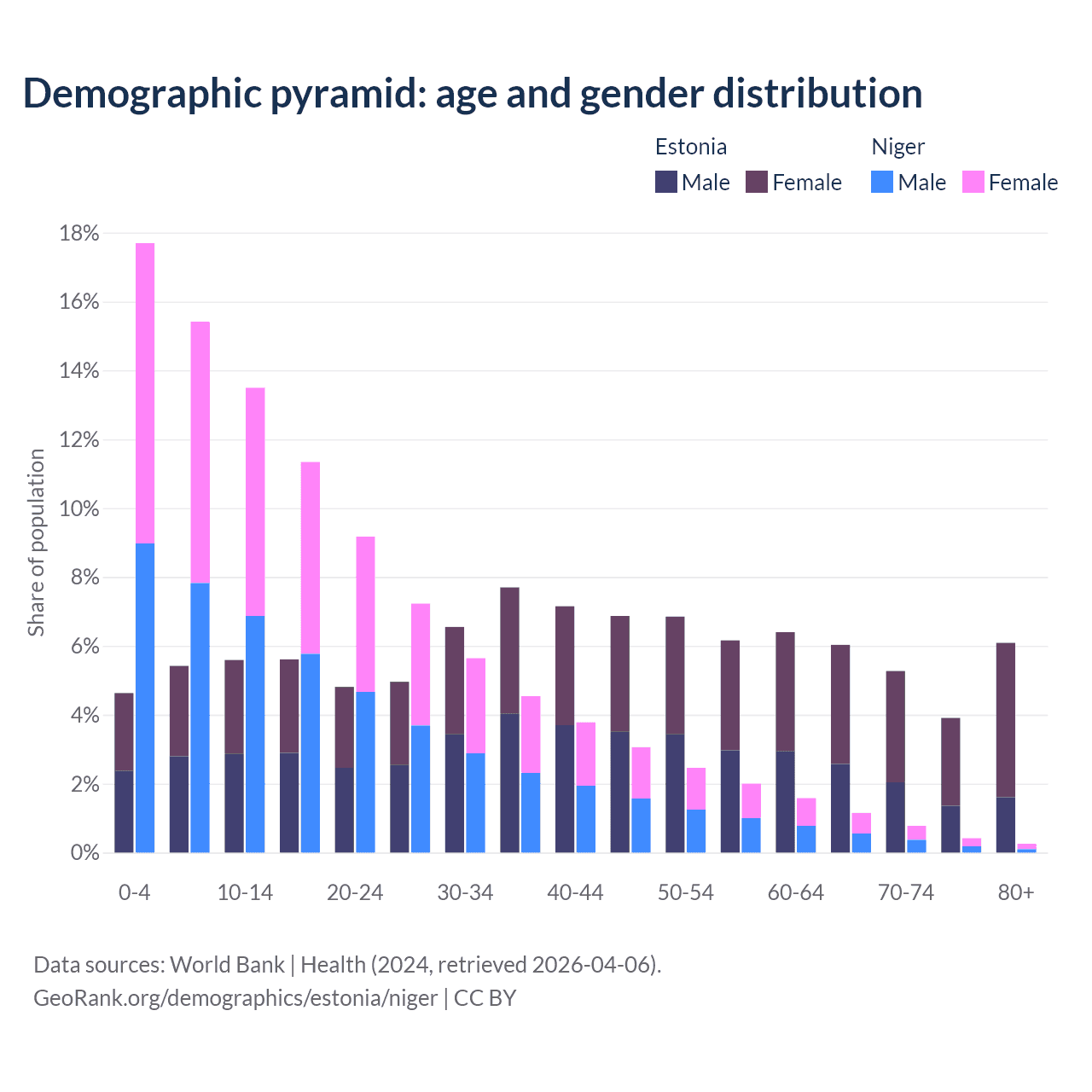 Demographics of Estonia compared to Niger: