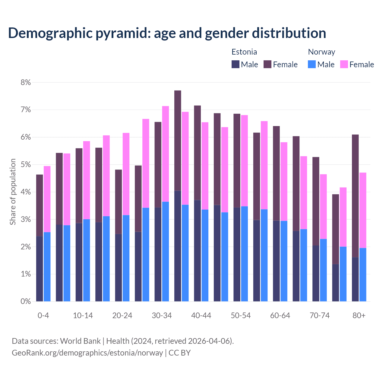 Demographics of Estonia compared to Norway: