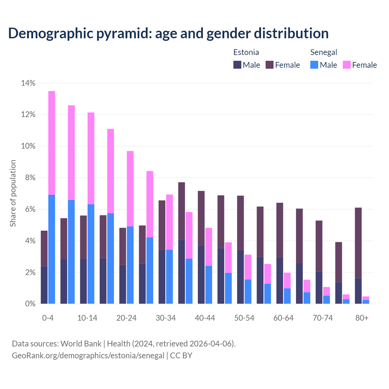 Demographics of Estonia compared to Senegal: