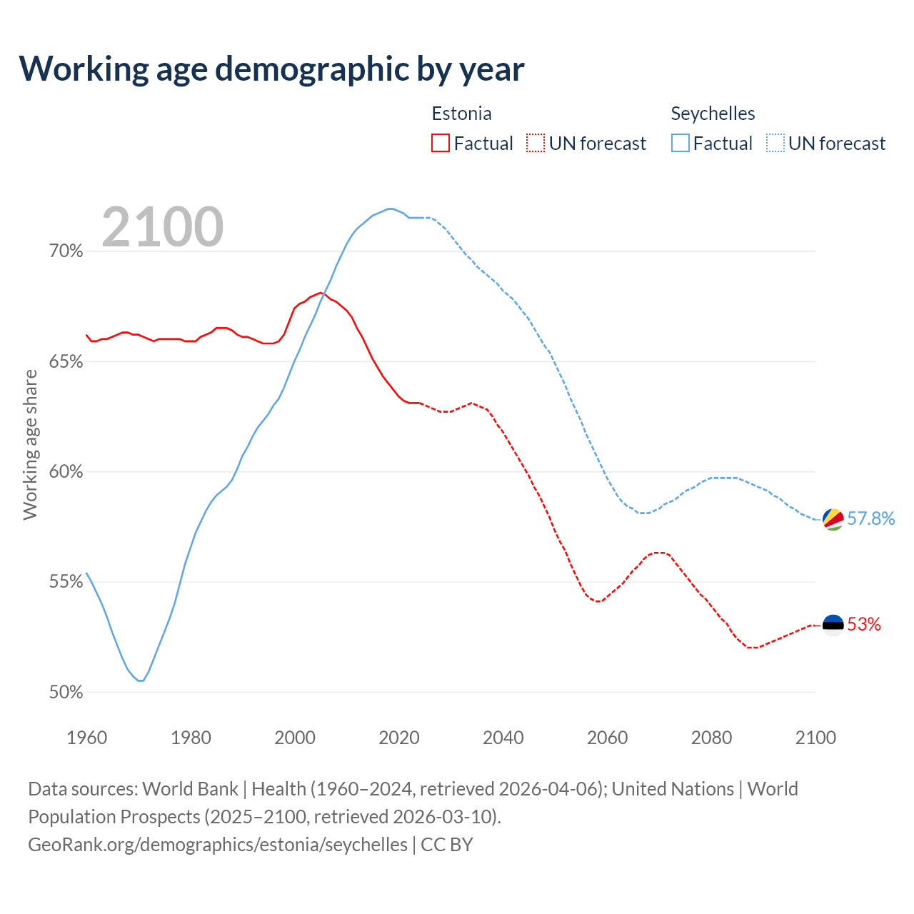 - Estonia has 845K working age adults (aged 15-64) vs 90.3K in the Seychelles.