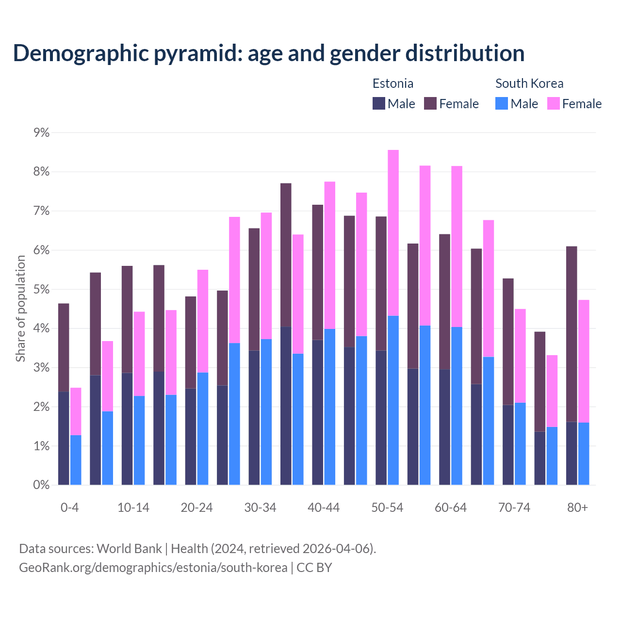 Demographics of Estonia compared to South Korea: