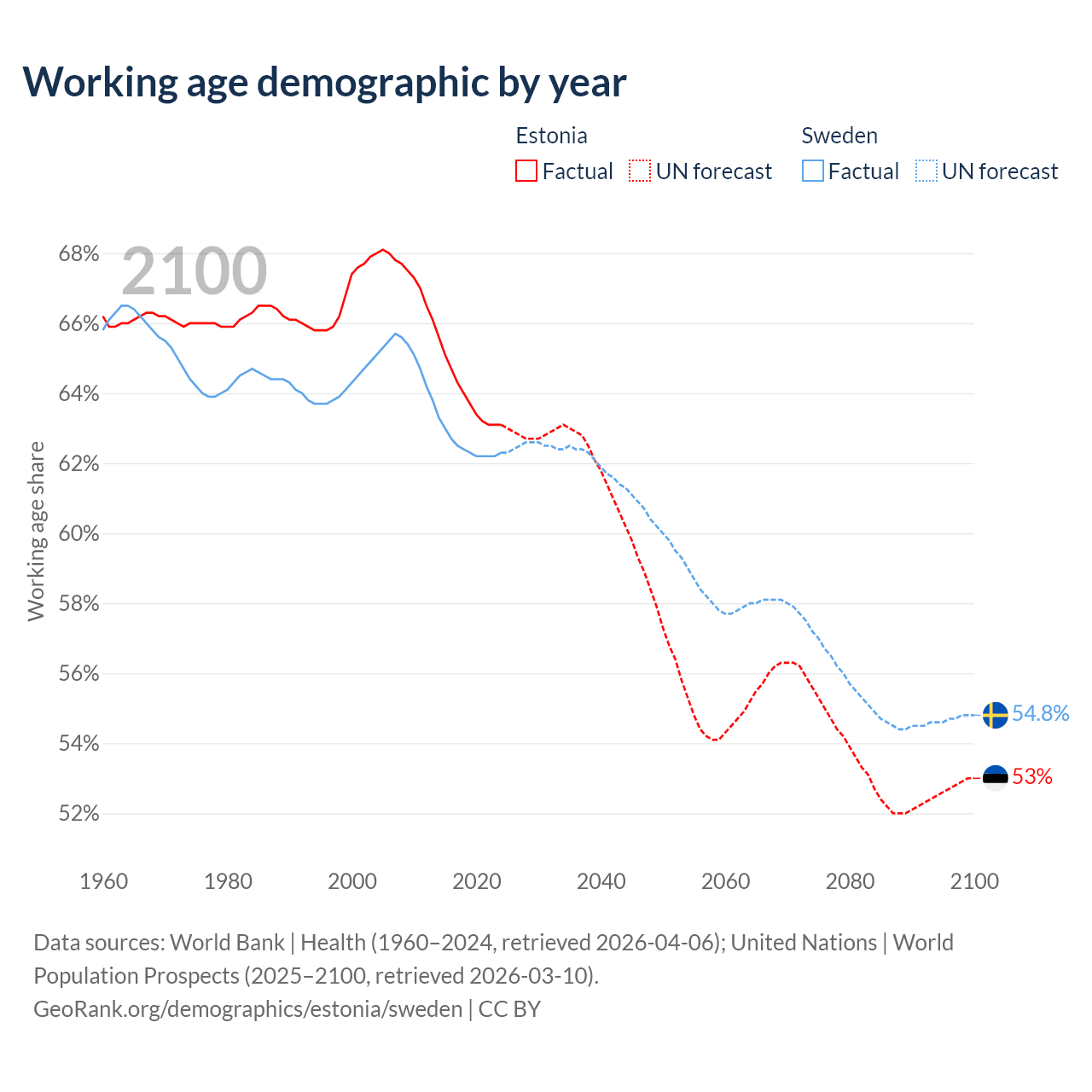 - Estonia has 845K working age adults (aged 15-64) vs 6.65M in Sweden.