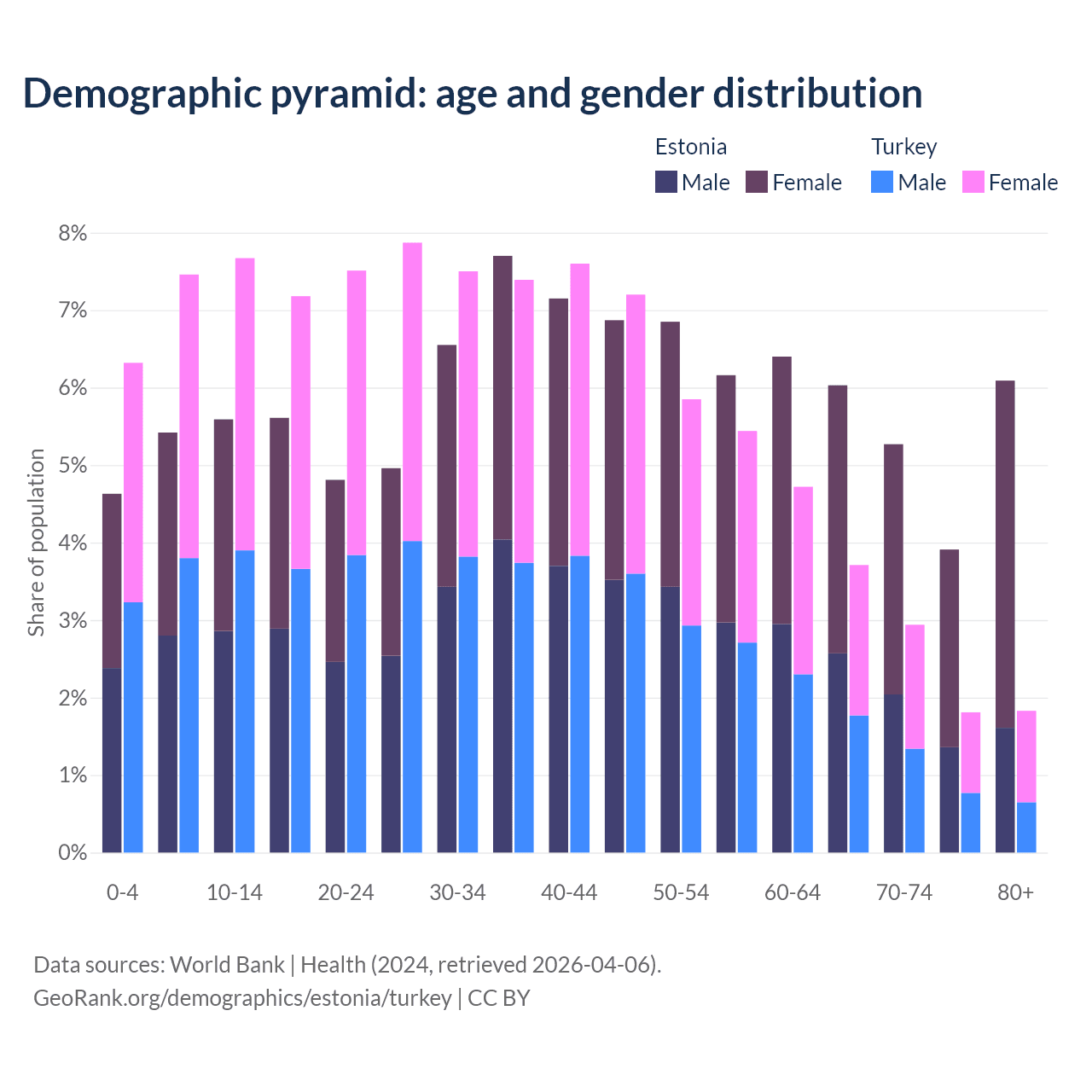 Demographics of Estonia compared to Turkey: