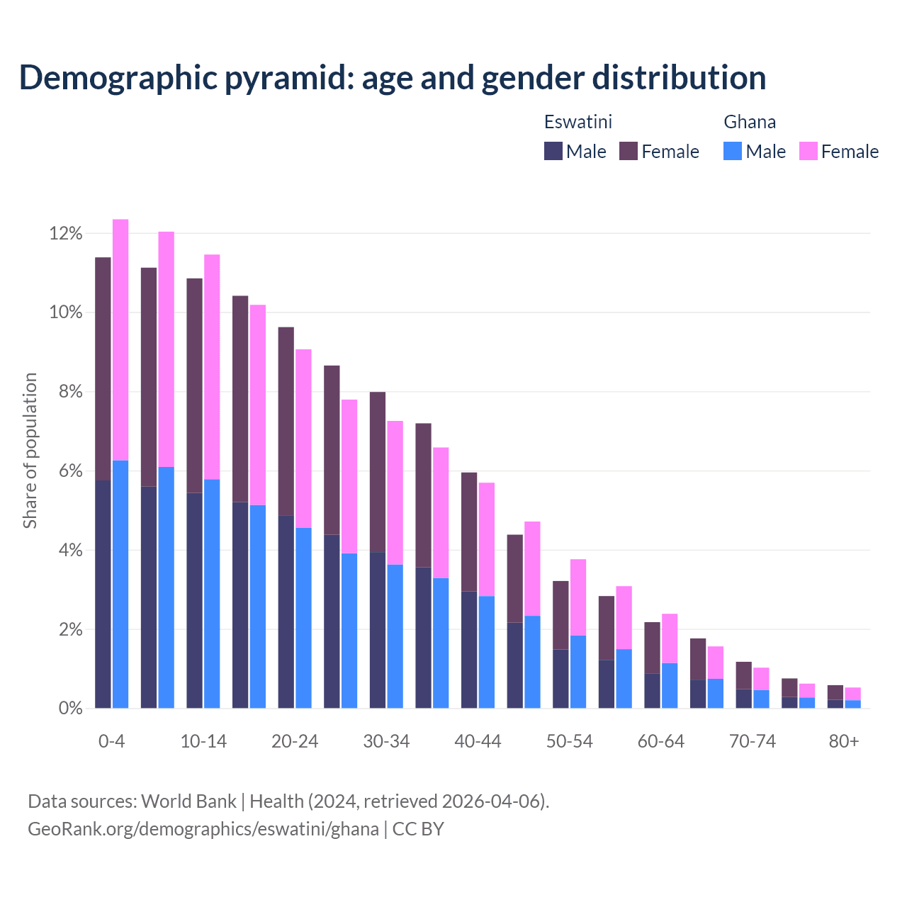 Demographics of Eswatini compared to Ghana: