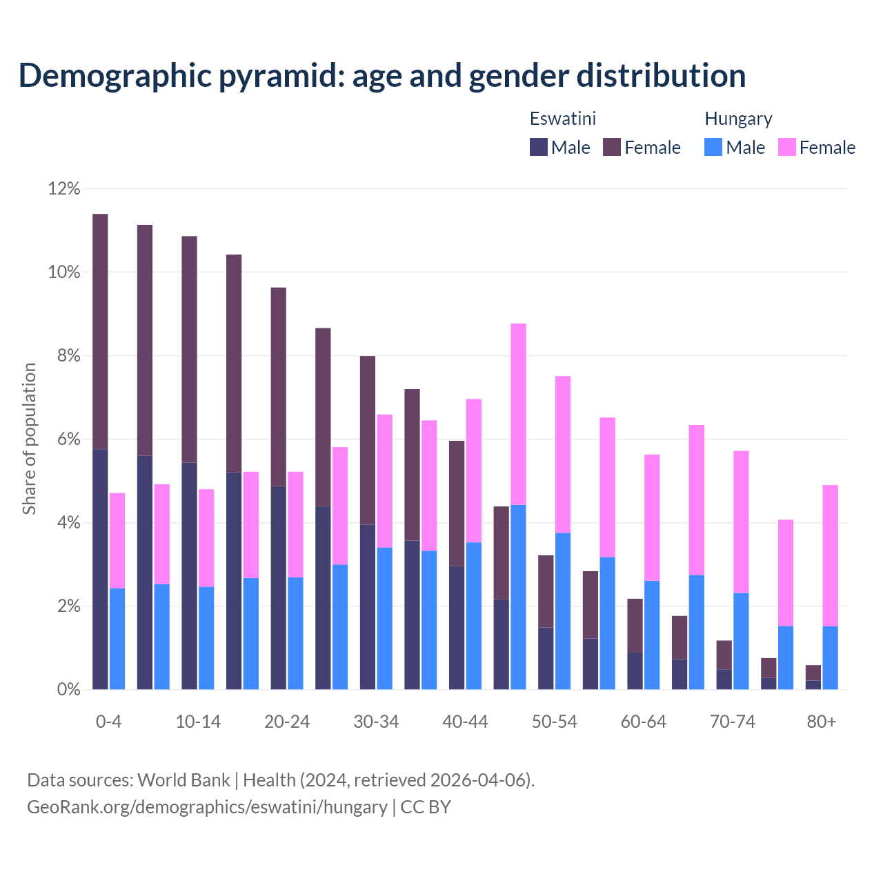 Demographics of Eswatini compared to Hungary:
