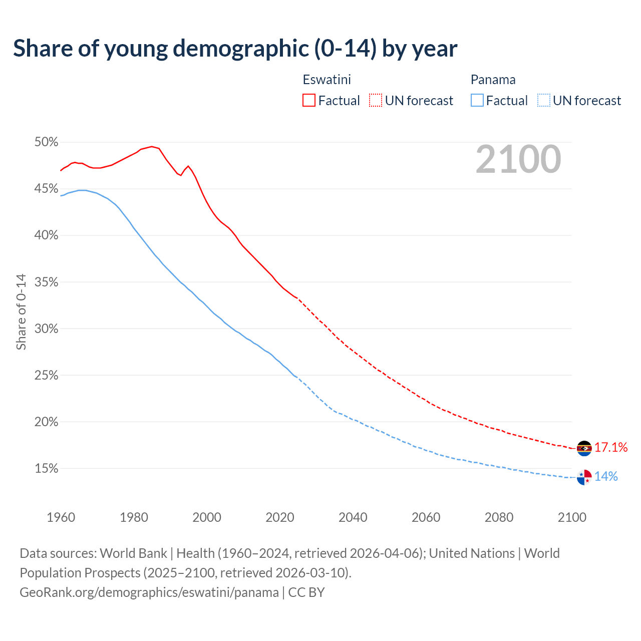 - The share of young demographic (0-15 years old) in Eswatini is 33.4% vs 24.9% in Panama.