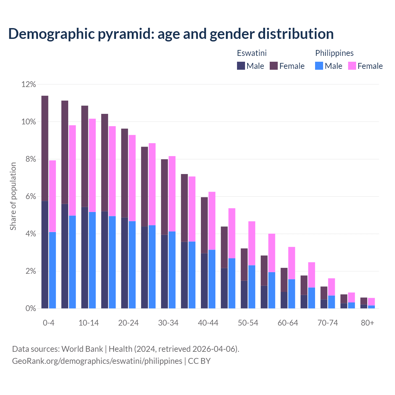 Demographics of Eswatini compared to the Philippines: