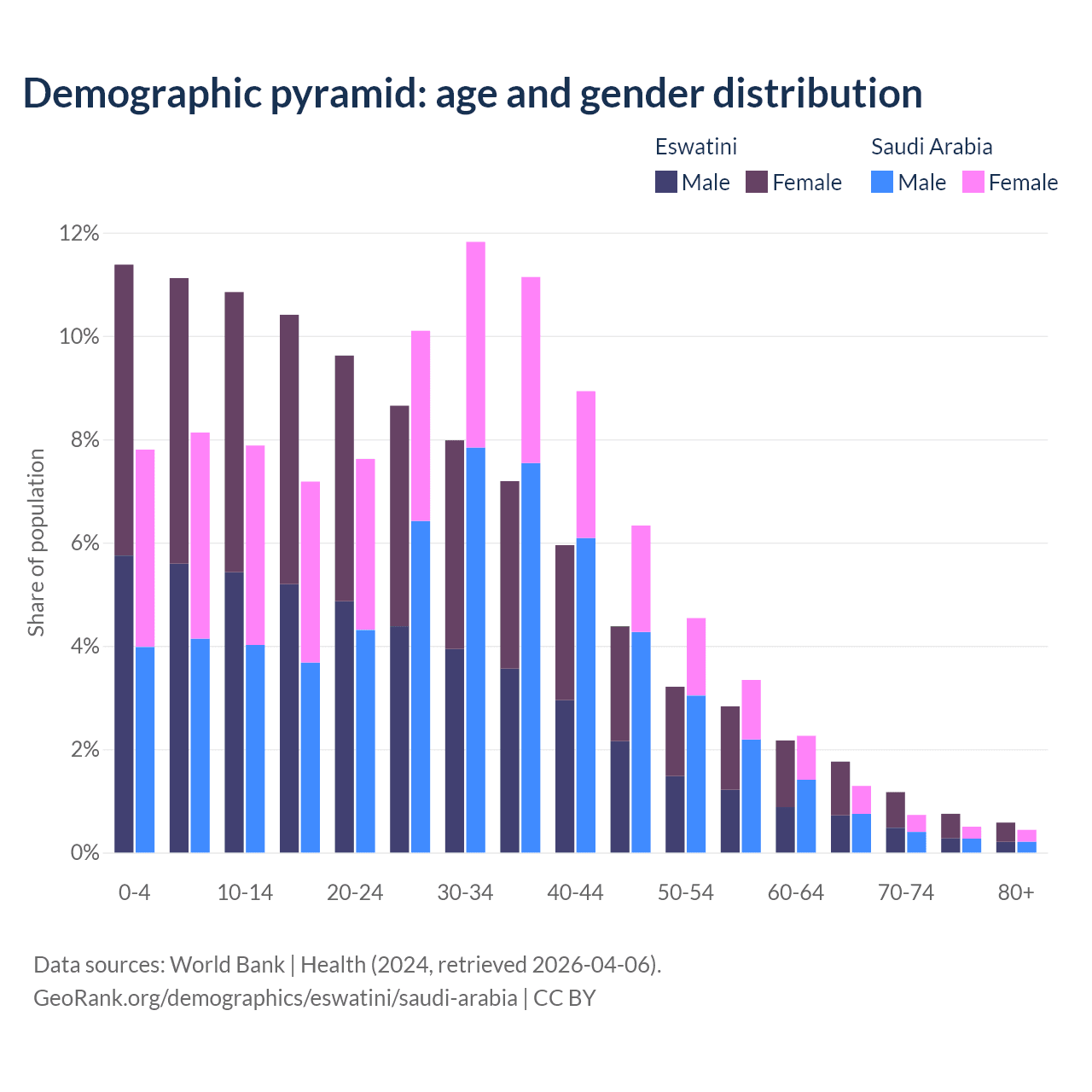Demographics of Eswatini compared to Saudi Arabia: