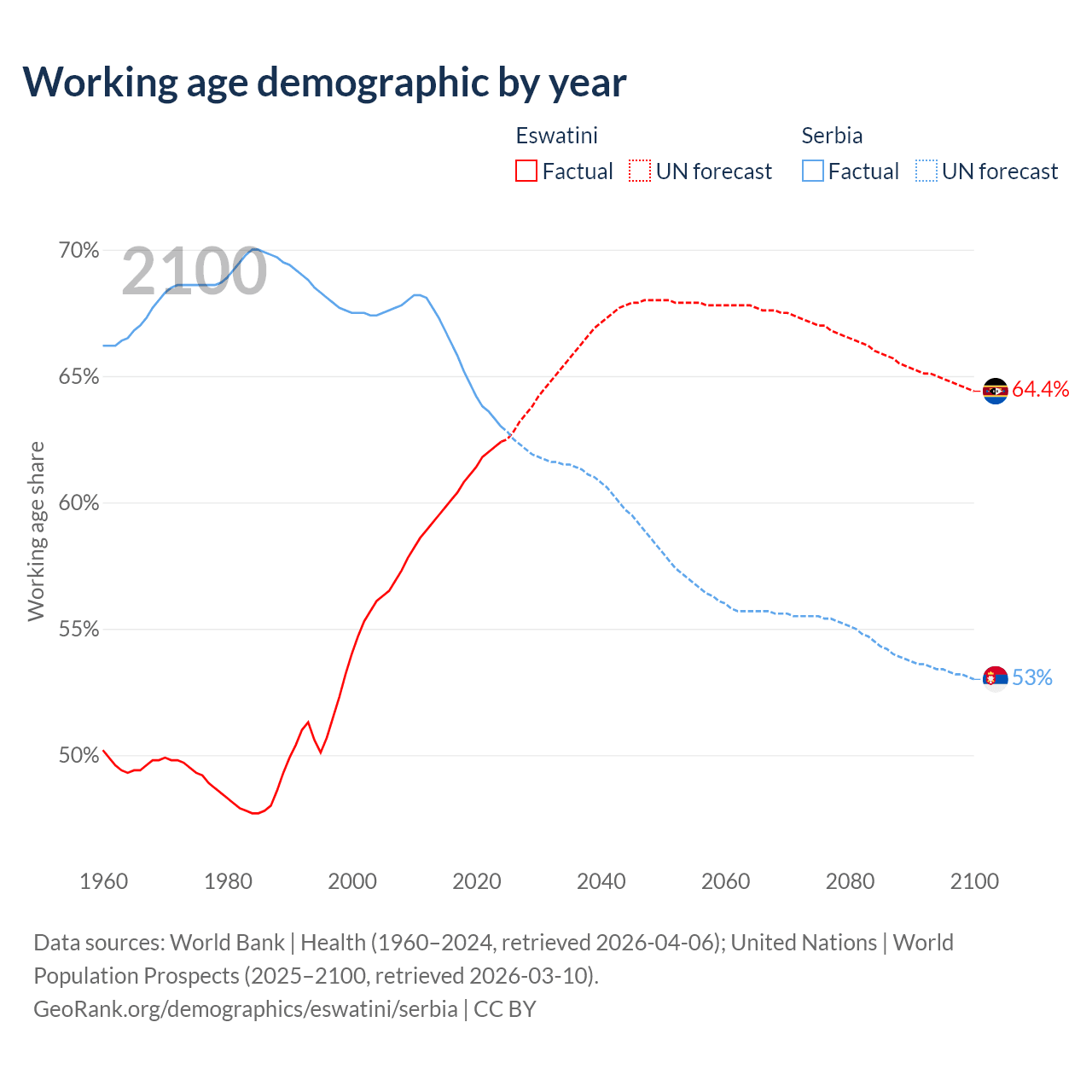 - Eswatini has 794K working age adults (aged 15-64) vs 4.09M in Serbia.