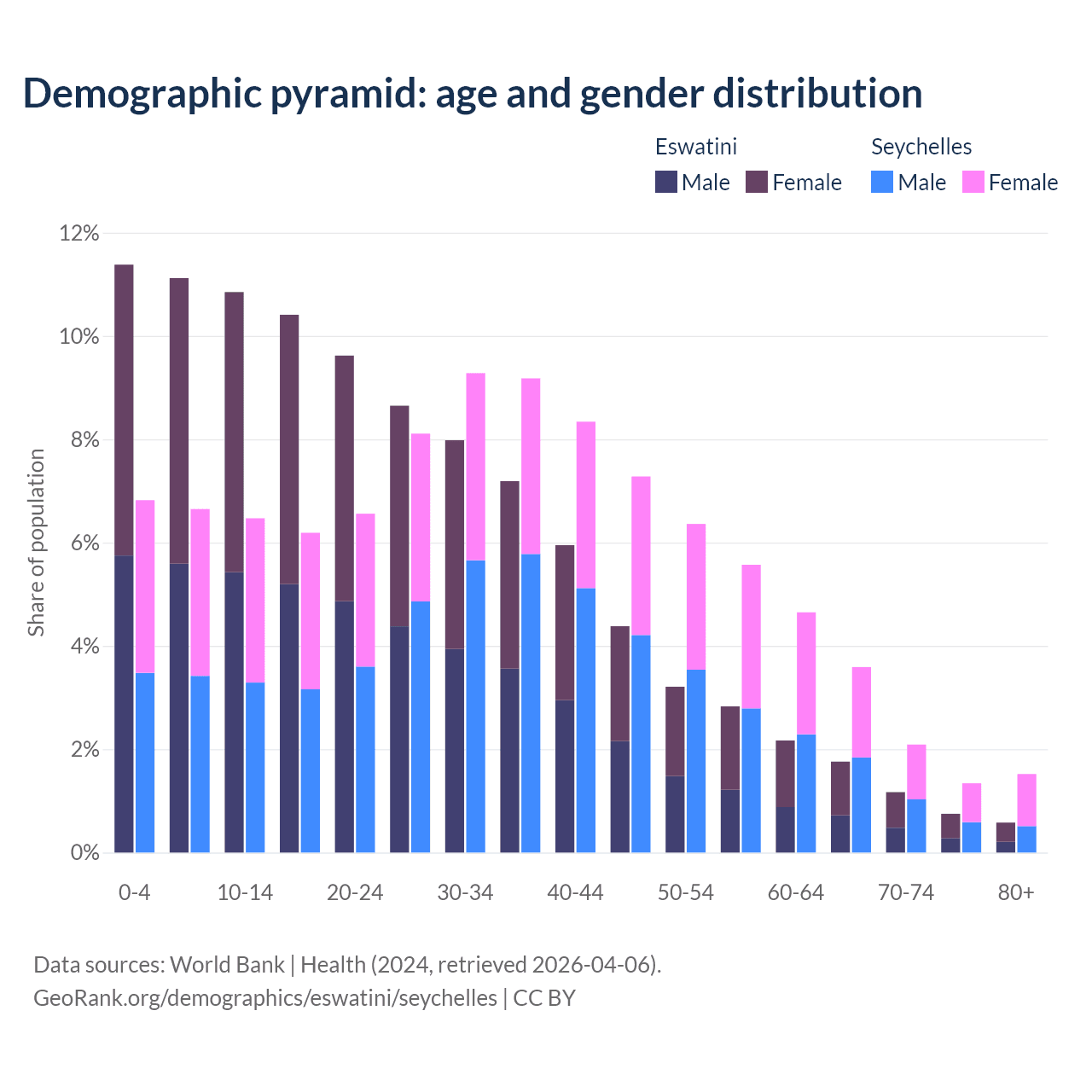 Demographics of Eswatini compared to the Seychelles: