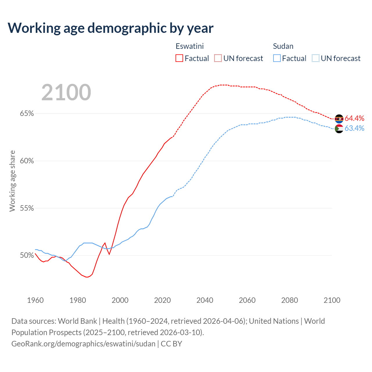 - Eswatini has 794K working age adults (aged 15-64) vs 30M in Sudan.