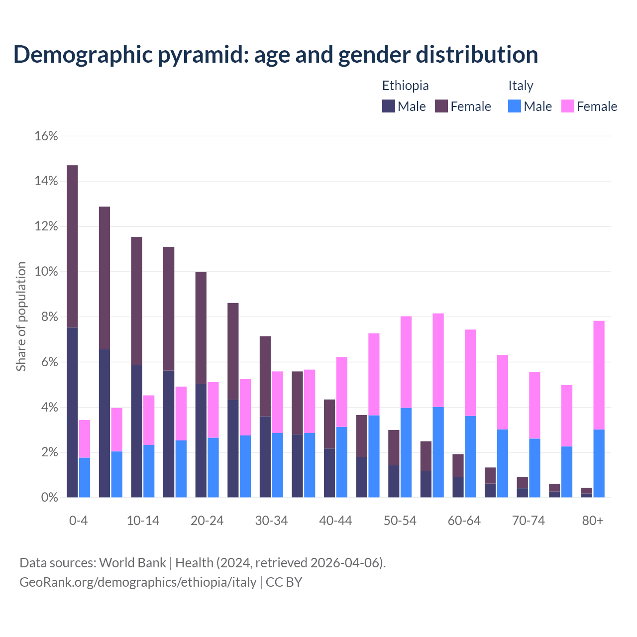 Demographics of Ethiopia compared to Italy: