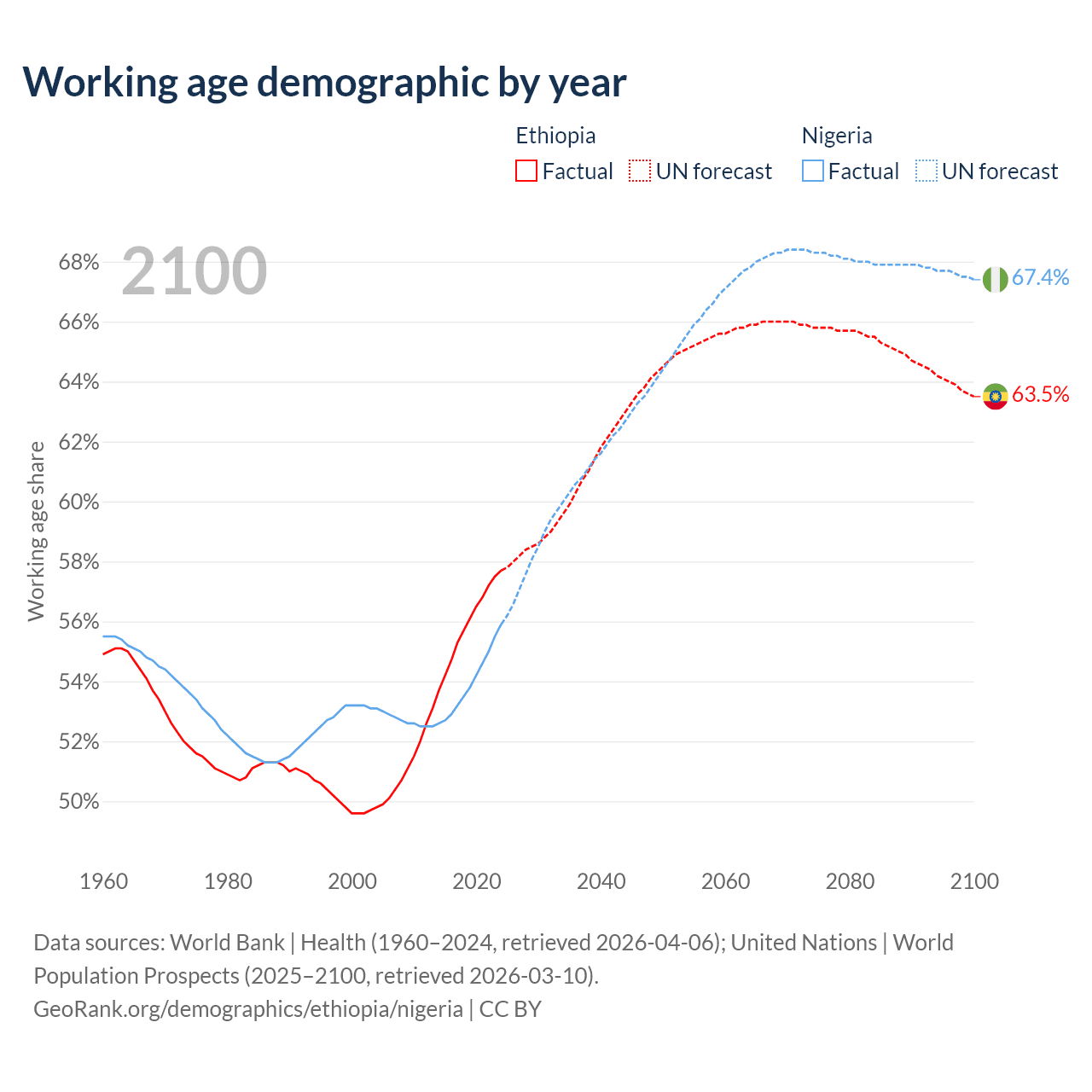 - Ethiopia has 80.7M working age adults (aged 15-64) vs 136M in Nigeria.