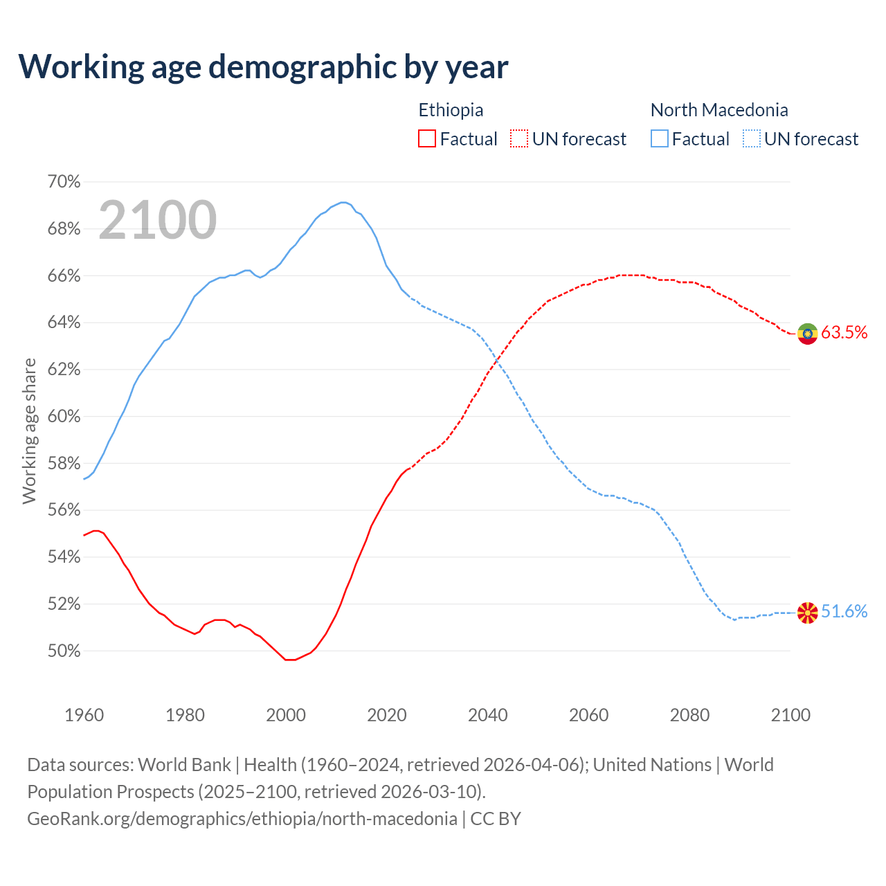 - Ethiopia has 80.7M working age adults (aged 15-64) vs 1.18M in North Macedonia.