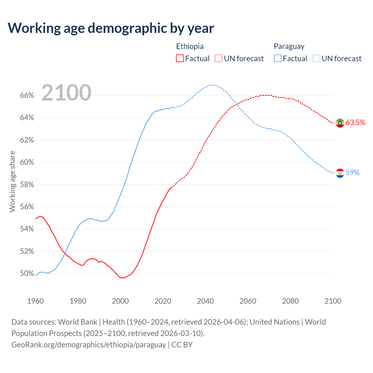 - Ethiopia has 80.7M working age adults (aged 15-64) vs 4.62M in Paraguay.