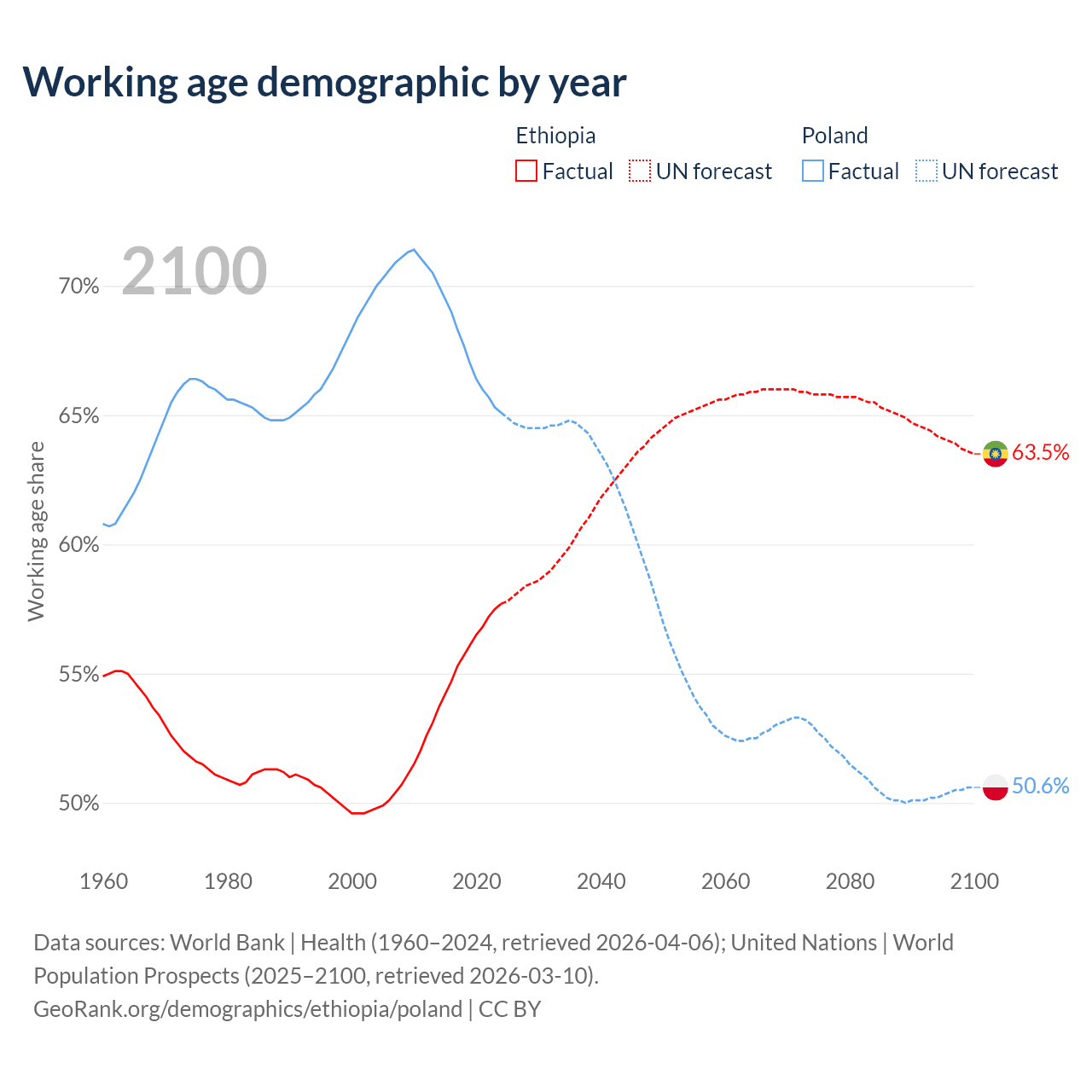 - Ethiopia has 80.7M working age adults (aged 15-64) vs 23.3M in Poland.