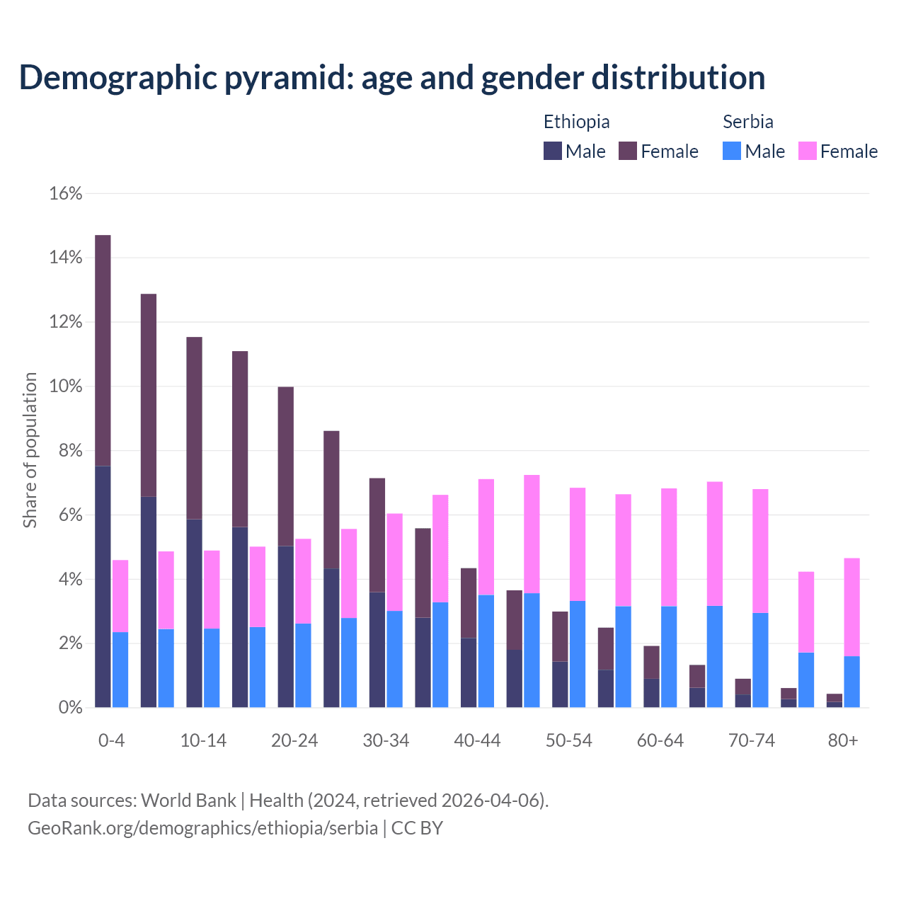 Demographics of Ethiopia compared to Serbia:
