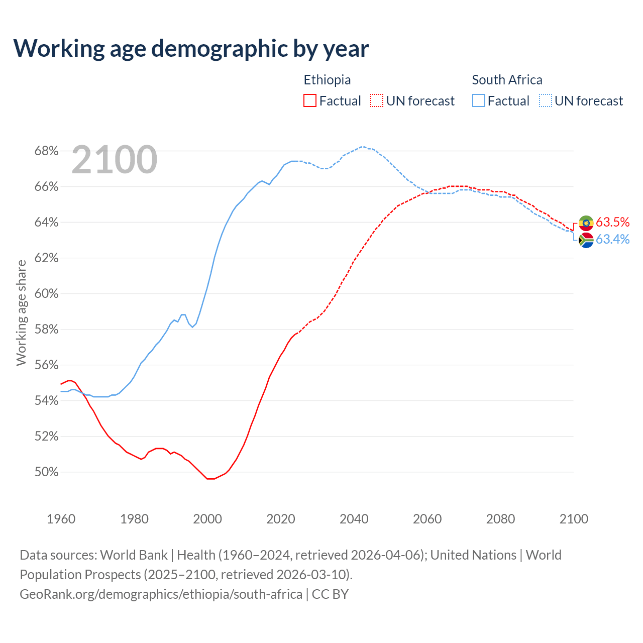 - Ethiopia has 80.7M working age adults (aged 15-64) vs 44.3M in South Africa.