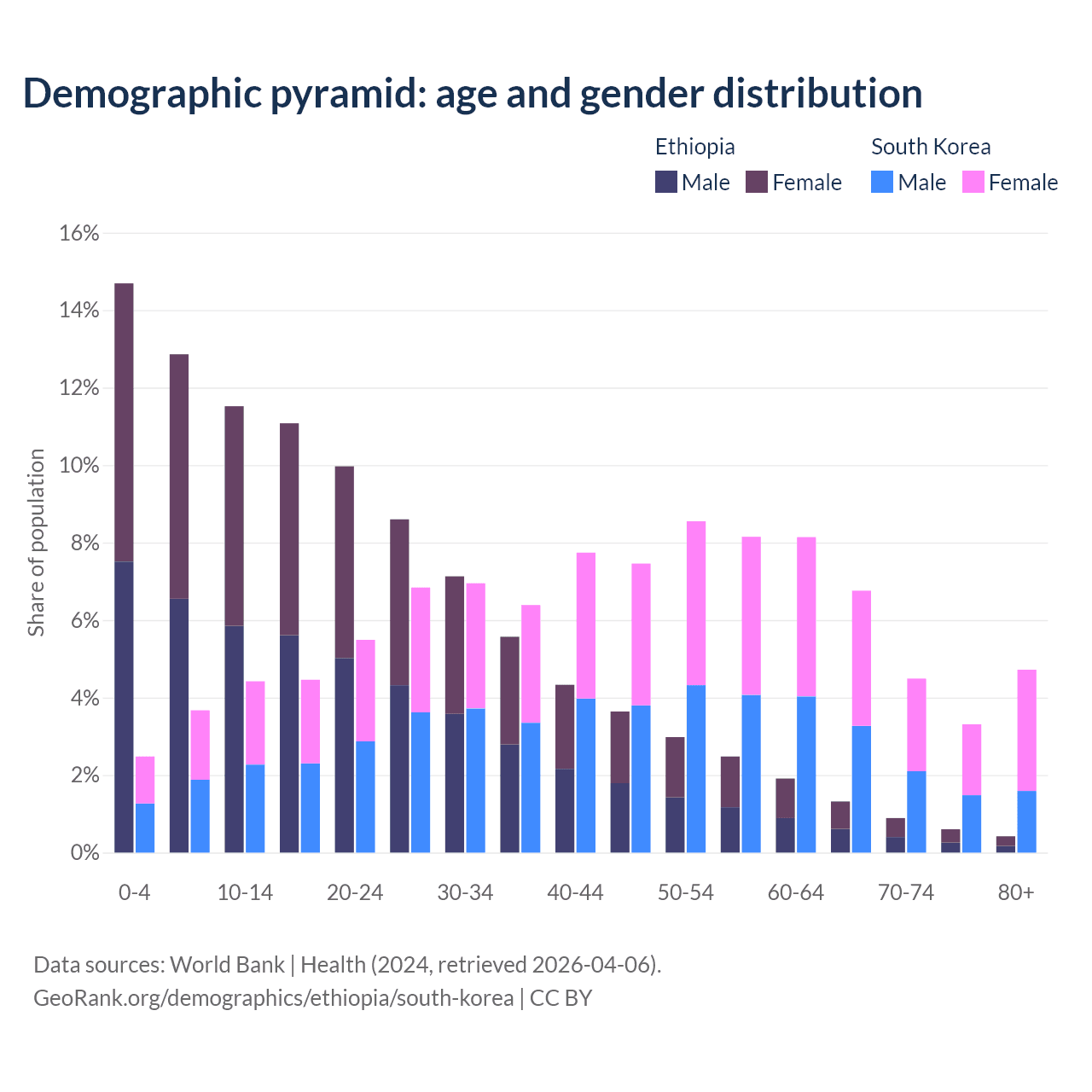 Demographics of Ethiopia compared to South Korea: