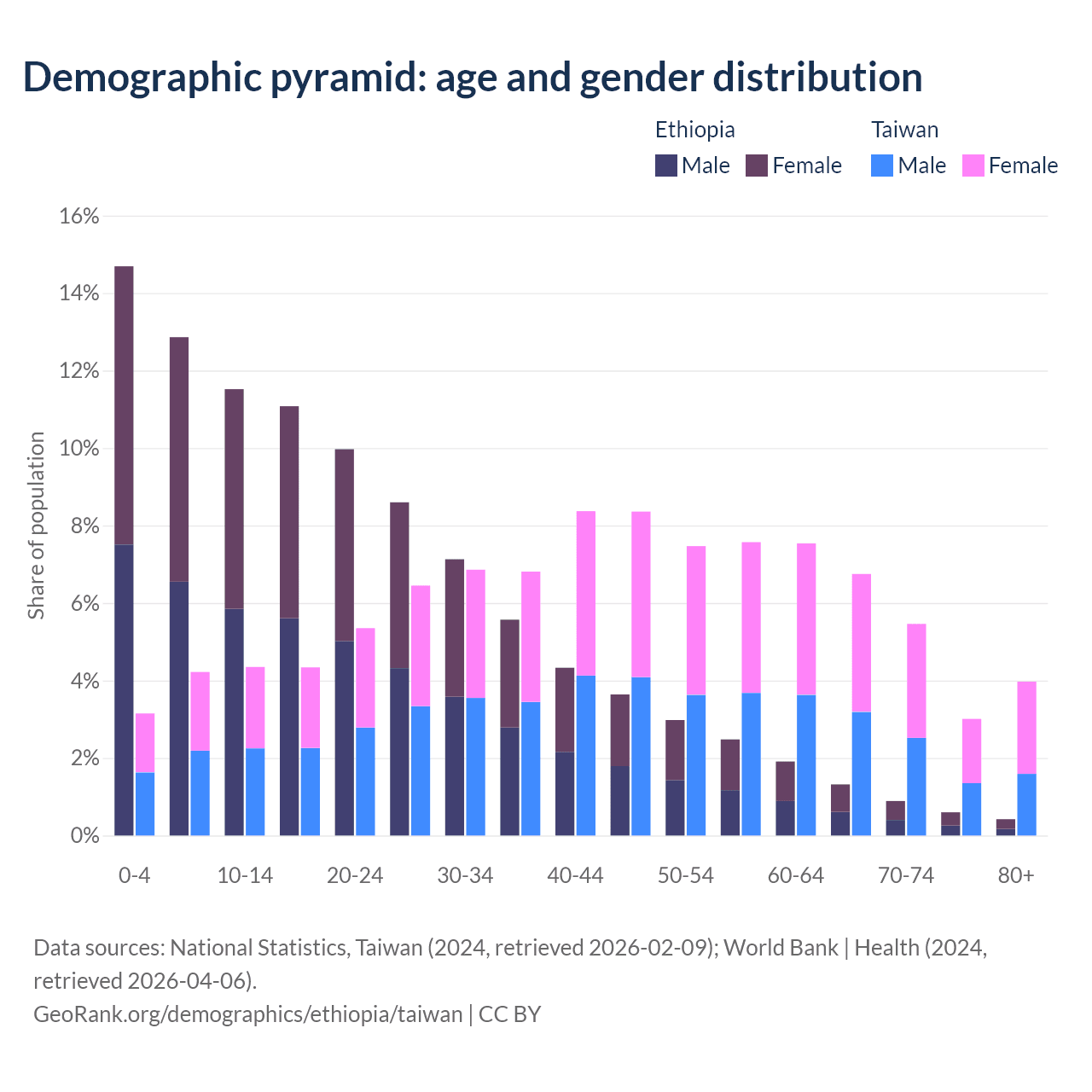 Demographics of Ethiopia compared to Taiwan: