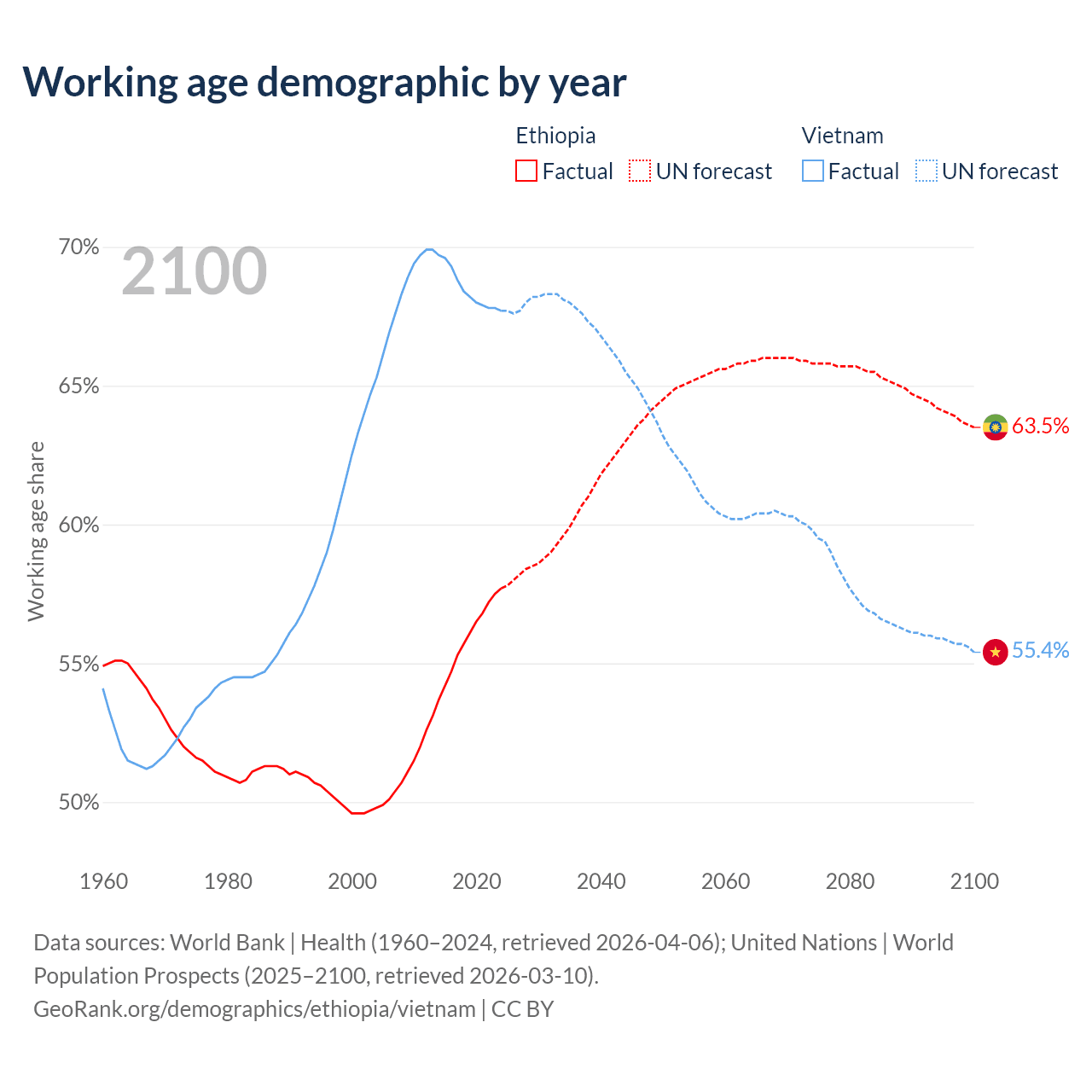- Ethiopia has 80.7M working age adults (aged 15-64) vs 69.3M in Vietnam.