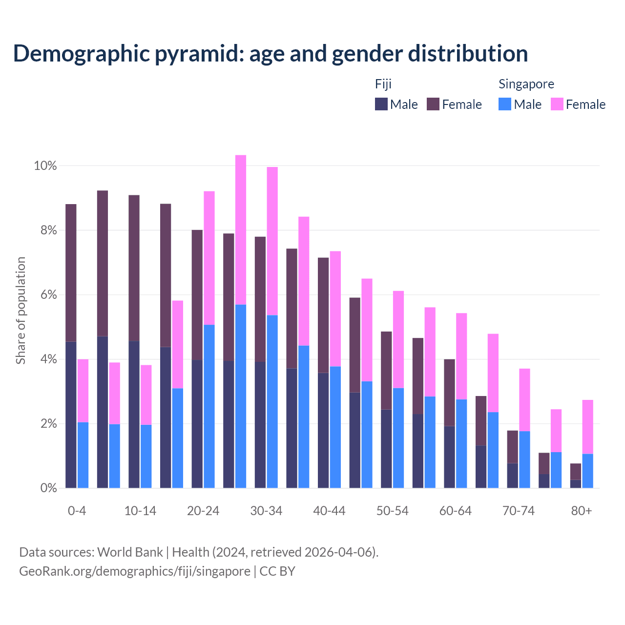 Demographics of Fiji compared to Singapore: