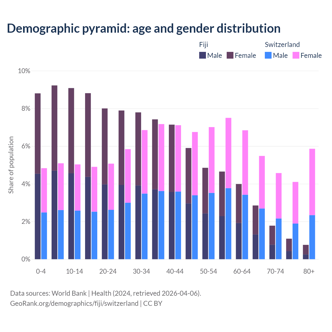 Demographics of Fiji compared to Switzerland: