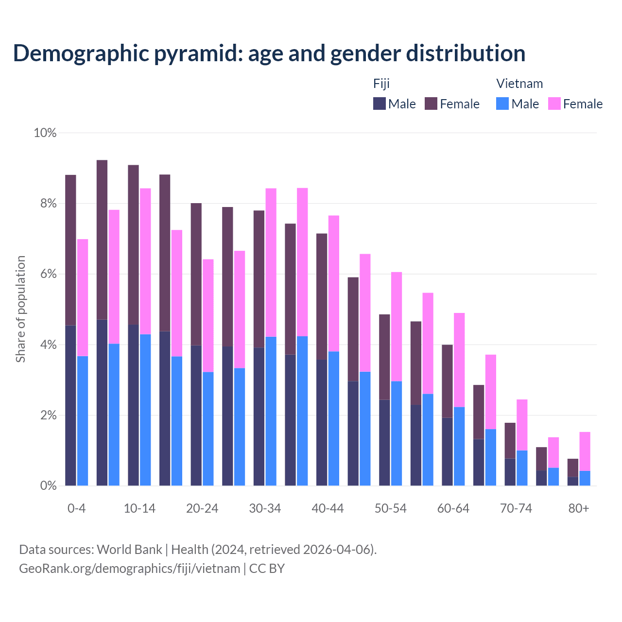 Demographics of Fiji compared to Vietnam: