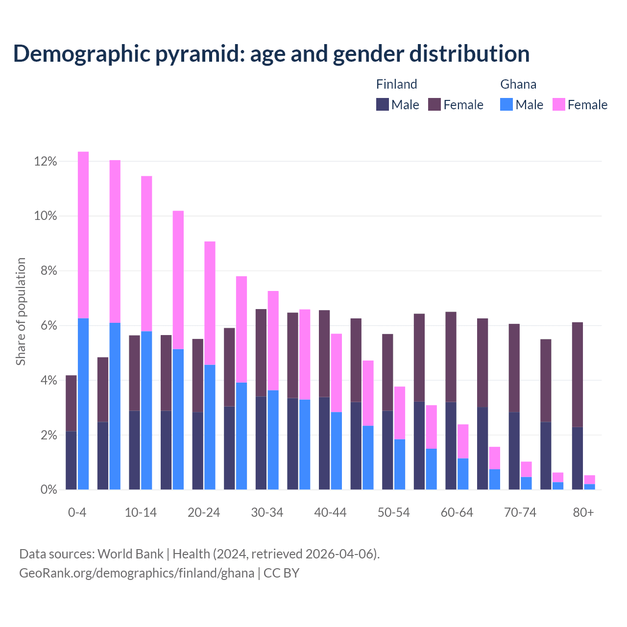 Demographics of Finland compared to Ghana:
