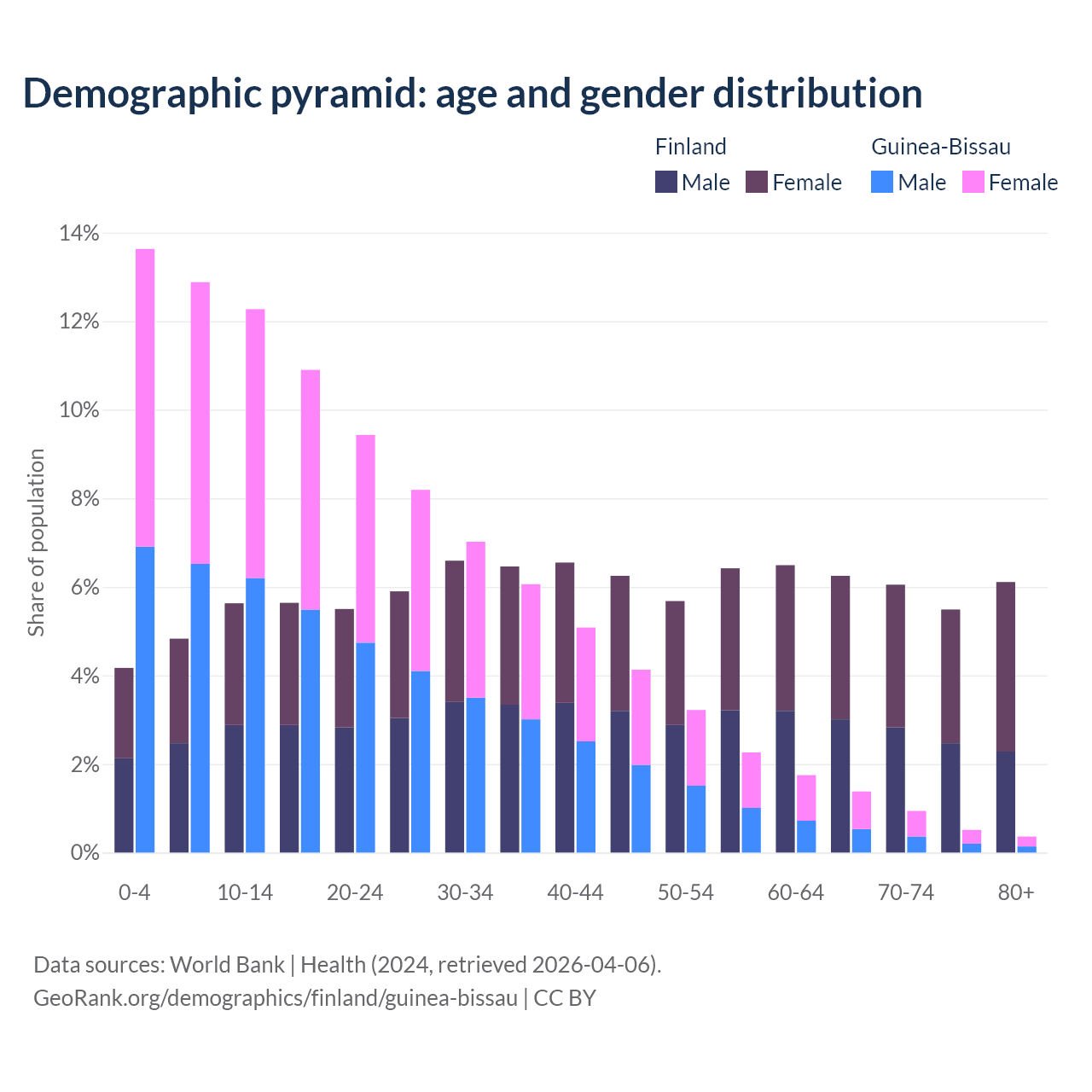 Demographics of Finland compared to Guinea-Bissau: