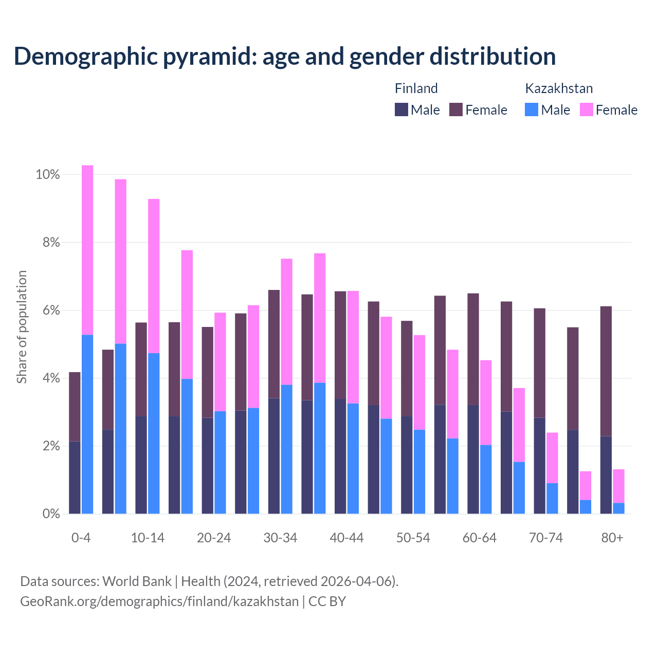 Demographics of Finland compared to Kazakhstan: