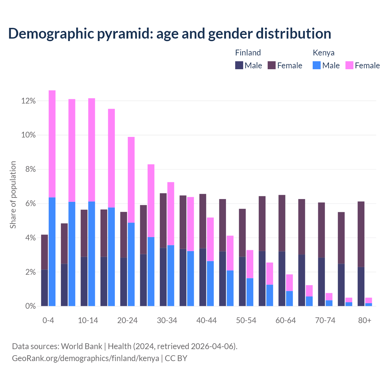 Demographics of Finland compared to Kenya: