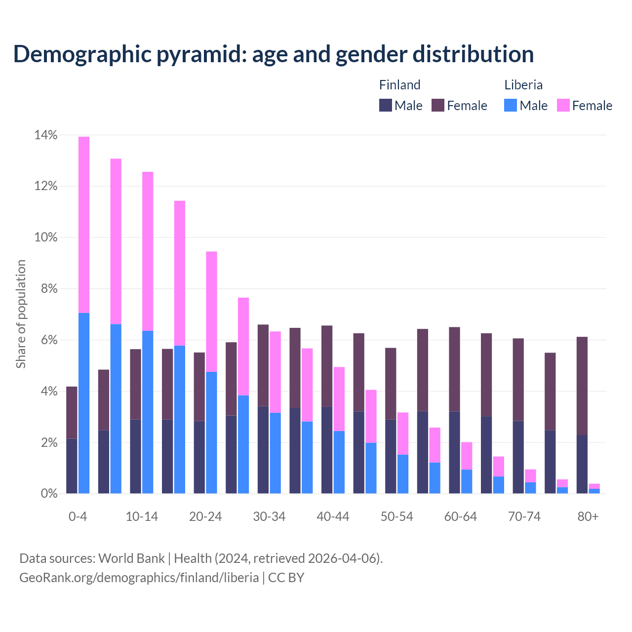 Demographics of Finland compared to Liberia: