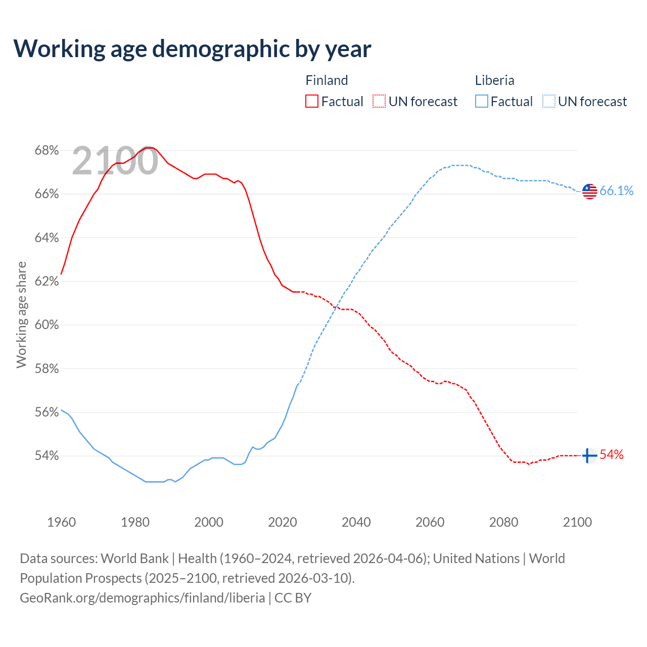 - Finland has 3.46M working age adults (aged 15-64) vs 3.37M in Liberia.