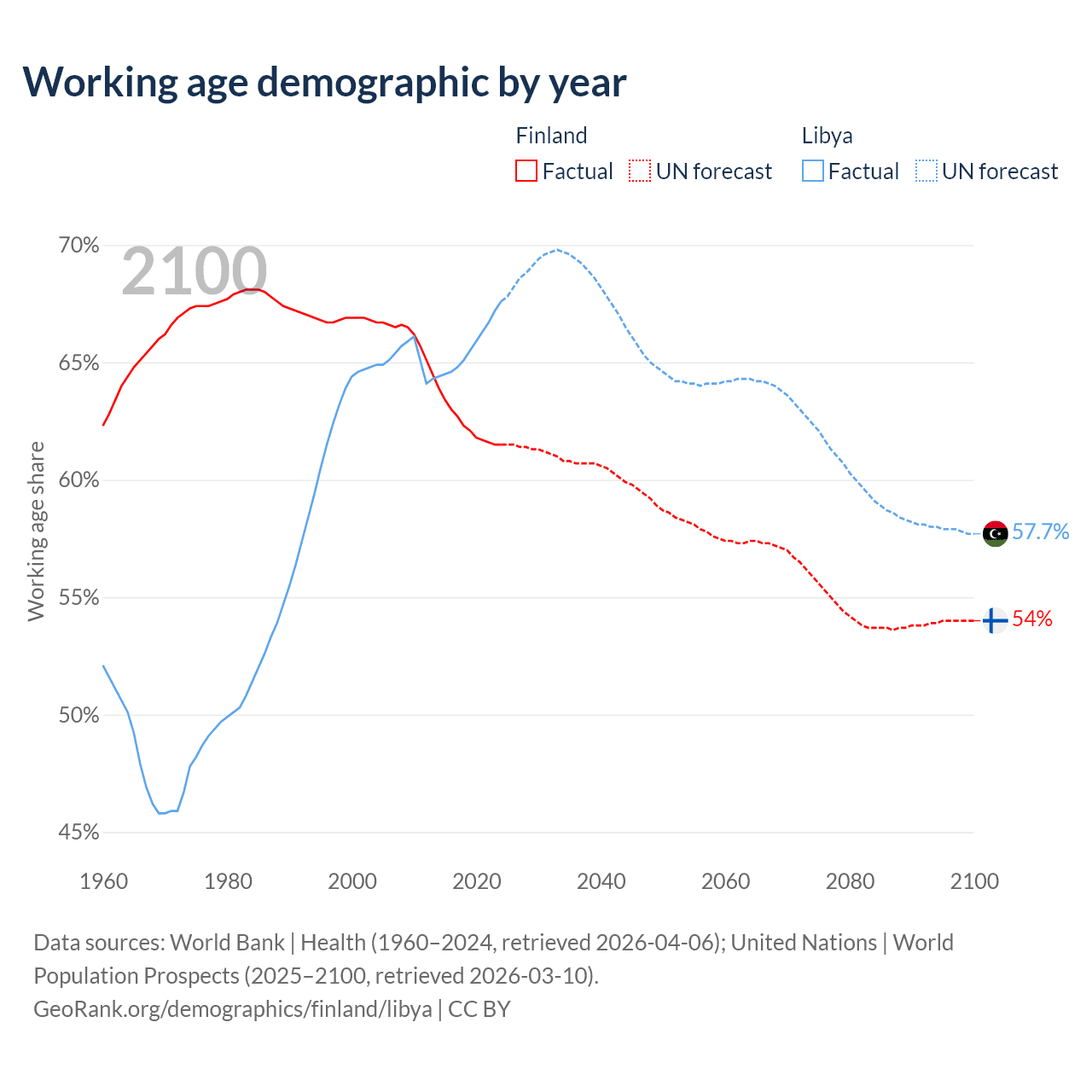 - Finland has 3.46M working age adults (aged 15-64) vs 5.11M in Libya.