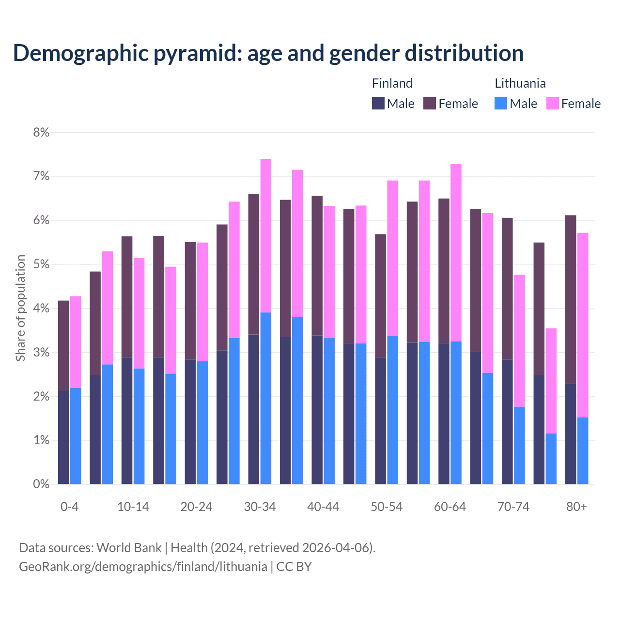 Demographics of Finland compared to Lithuania: