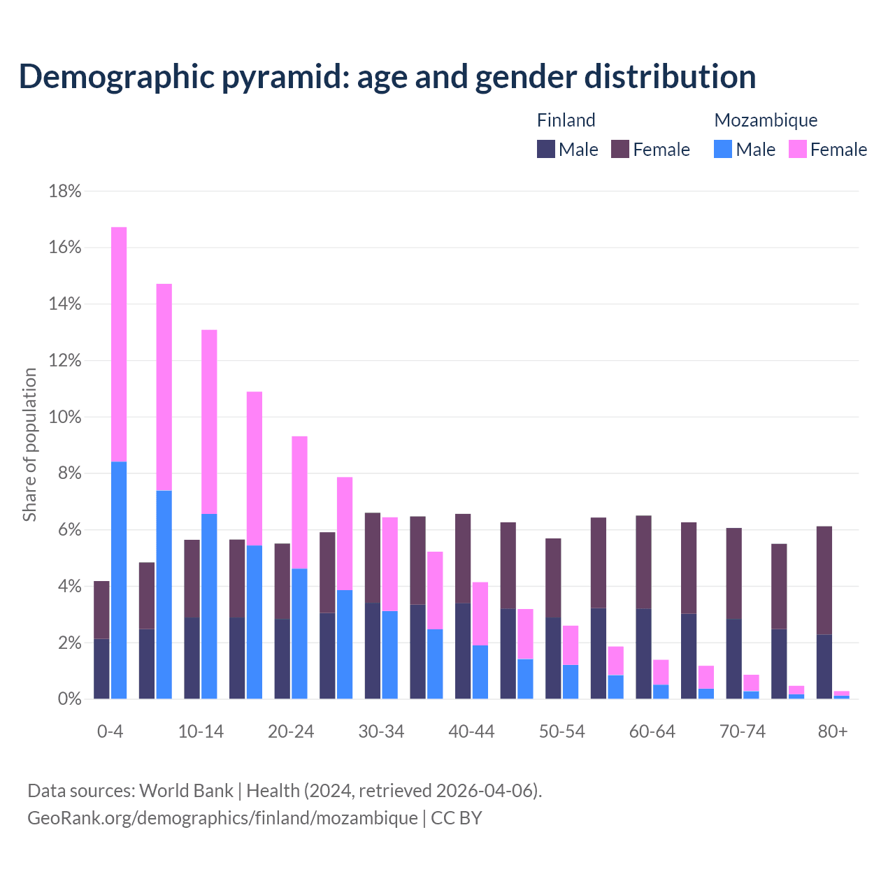 Demographics of Finland compared to Mozambique: