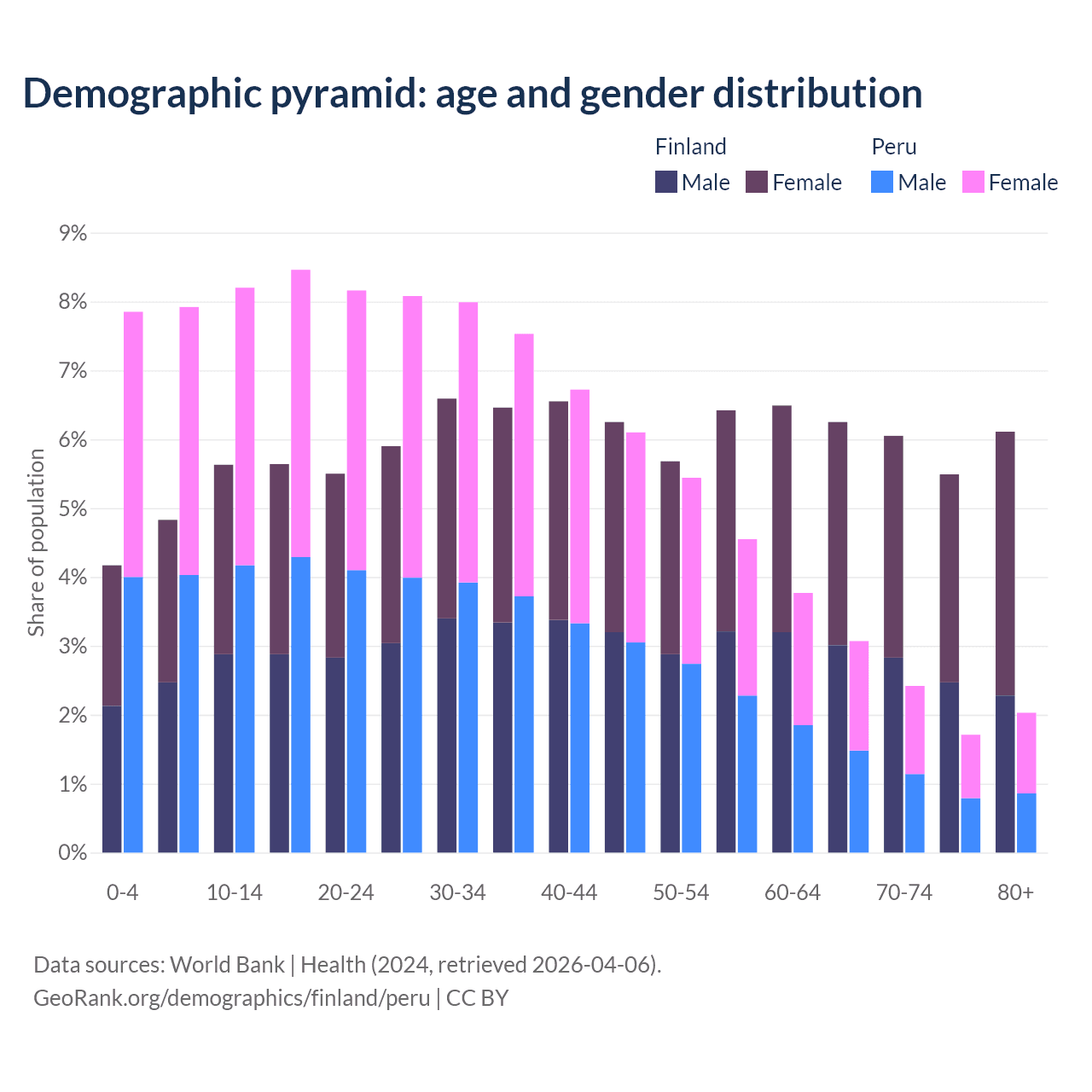 Demographics of Finland compared to Peru: