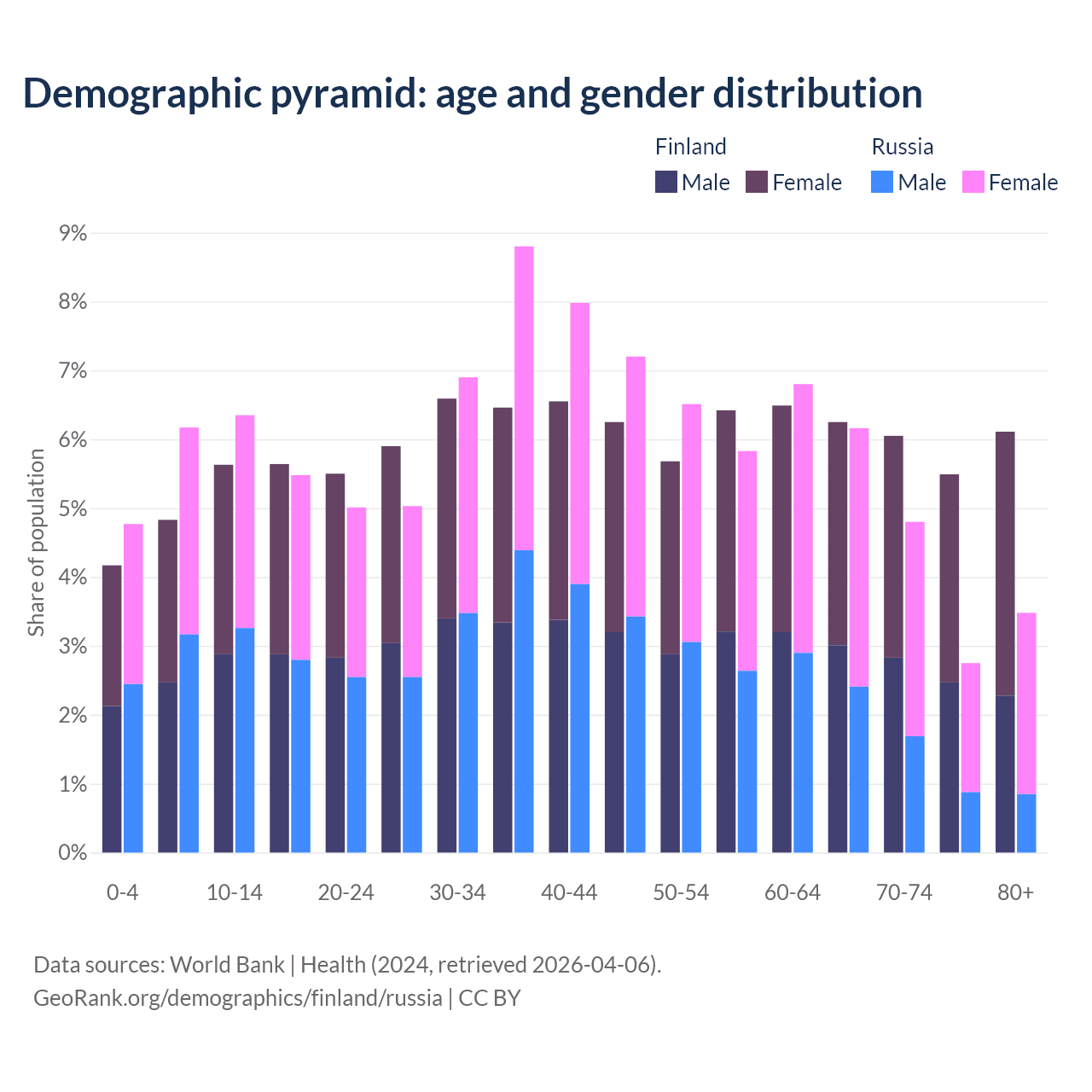 Demographics of Finland compared to Russia: