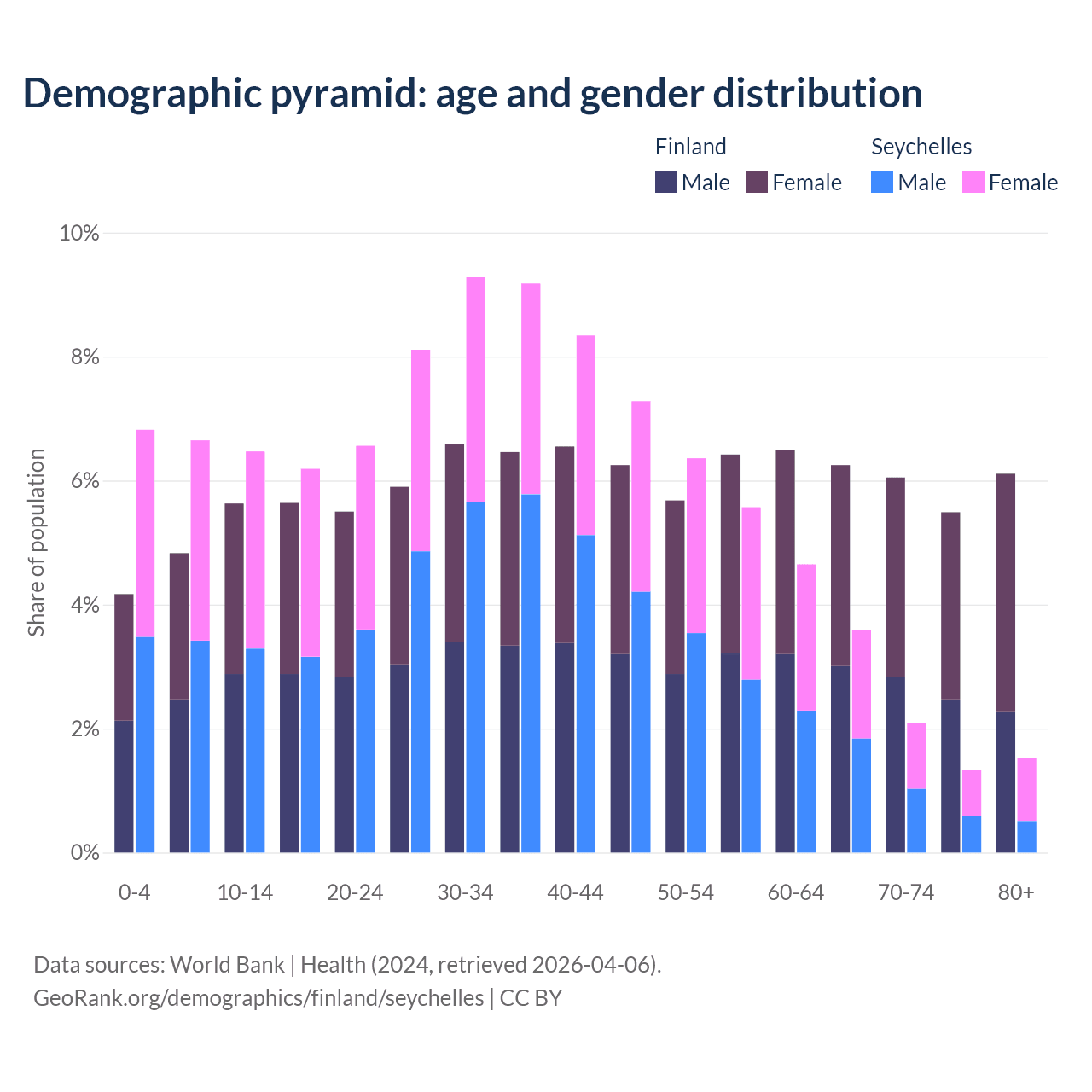 Demographics of Finland compared to the Seychelles: